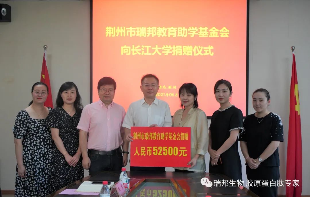 2021年6月23日荊州市瑞邦教育助學(xué)基金會與長江大學(xué)教育發(fā)展基金會在長江大學(xué)簽訂捐贈協(xié)議并頒發(fā)捐...